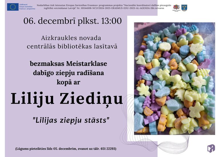 ✅️ Pasākumu organizē Aizkraukles Novada Interešu Izglītības Centrs un Aizkraukles novada centrālā bibliotēka, sadarbībā ar Izglītības un zinātnes ministriju (Eiropas Savienības Erasmus+ programmas projekts “Nacionālie koordinatori dalības pieaugušo izglītībā veicināšanai Latvijā”, Nr. 101144108-NCLV2024-2025-ERASMUS-EDU-2023-AL-AGENDA-IBA).