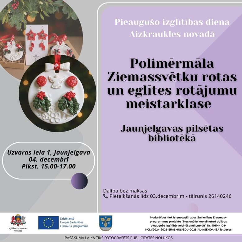 Aicinām uz mierpilnu un radošu Ziemassvētku meistarklasi, kas notiks Pieaugušo izglītības dienu ietvaros!