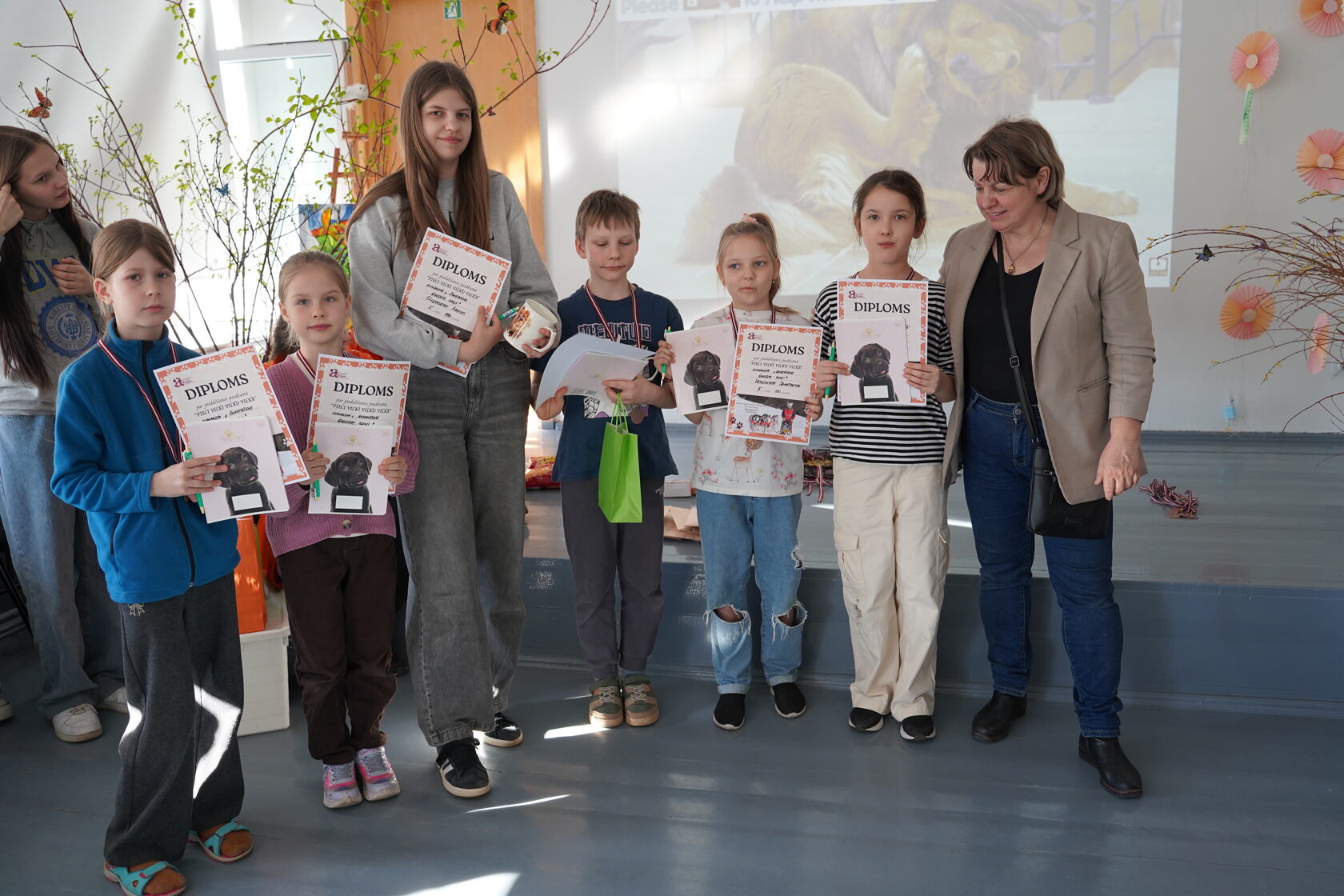 Draudzība, zināšanas un suņu prieks: Pasākums "PIECI VILKI VILKU VILKA" Aizkrauklē 21. martā Aizkraukles novada Interešu izglītības centrā (ANIIC) valdīja nebijusi rosība – šeit norisinājās draudzības pasākums "PIECI VILKI VILKU VILKA". Pasākums pulcināja ANIIC audzēkņus pulciņa "Kinoloģijas pamati" un viesus no Madonas bērnu un jauniešu centra pulciņa “Ķepu ķepā, roku rokā, mācos kopā”.Pasākuma galvenais mērķis bija veicināt sadarbību un pieredzes apmaiņu starp jaunajiem suņu mīļotājiem. Lai to īstenotu, tika izveidotas piecas jauktas komandas – katrā plecu pie pleca darbojās trīs aizkrauklieši un trīs madonieši.Komandām bija jāpārvar pieci aizraujoši un izzinoši izaicinājumi:• Zināšanu pārbaude: Āķīga viktorīna par četrkājaino draugu pasauli.• Veiklība: Dinamiska šķēršļu trase.• Rūpes un radošums: Suņa ģērbšana un vārdu izdomāšana uz noteikta burta.• Kultūras mantojums: Tautasdziesmu salikšana un burtu rēbusi.Īpašu paldies sakām biedrībai "SNIEGA SUŅI" par atbalstu! Pateicoties viņiem, uzvarētāju komanda saņēma neaizmirstamu balvu – braucienu suņu pajūgā.Paldies visiem dalībniekiem par enerģiju un Madonas komandai par ciemos braukšanu! Kopā mēs pierādījām, ka mīlestība pret dzīvniekiem vieno un iedvesmo lieliem darbiem.Sirsnīgs un liels paldies skolotājai Ingūnai Tihomirovai par pasākuma organizēšanu.