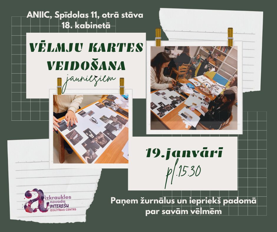 Nāc uz Vēlmju kartes veidošanu jauniešiem! Radoši, brīvi un bez steigas veidosim karti saviem sapņiem. Paņem līdzi žurnālus un idejas.